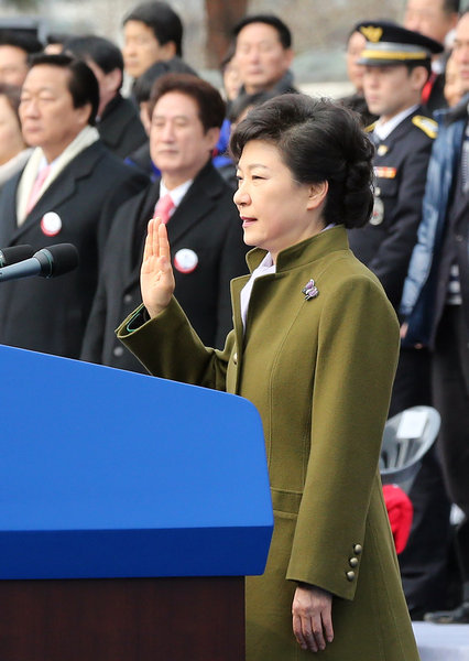 朴槿惠正式宣誓就职韩国总统 鸟叔助阵(1)(3)