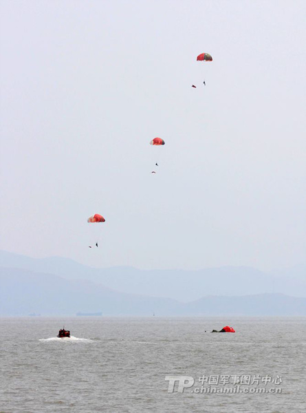 解放军女飞行员组织海上跳水救生训练(1)(4)